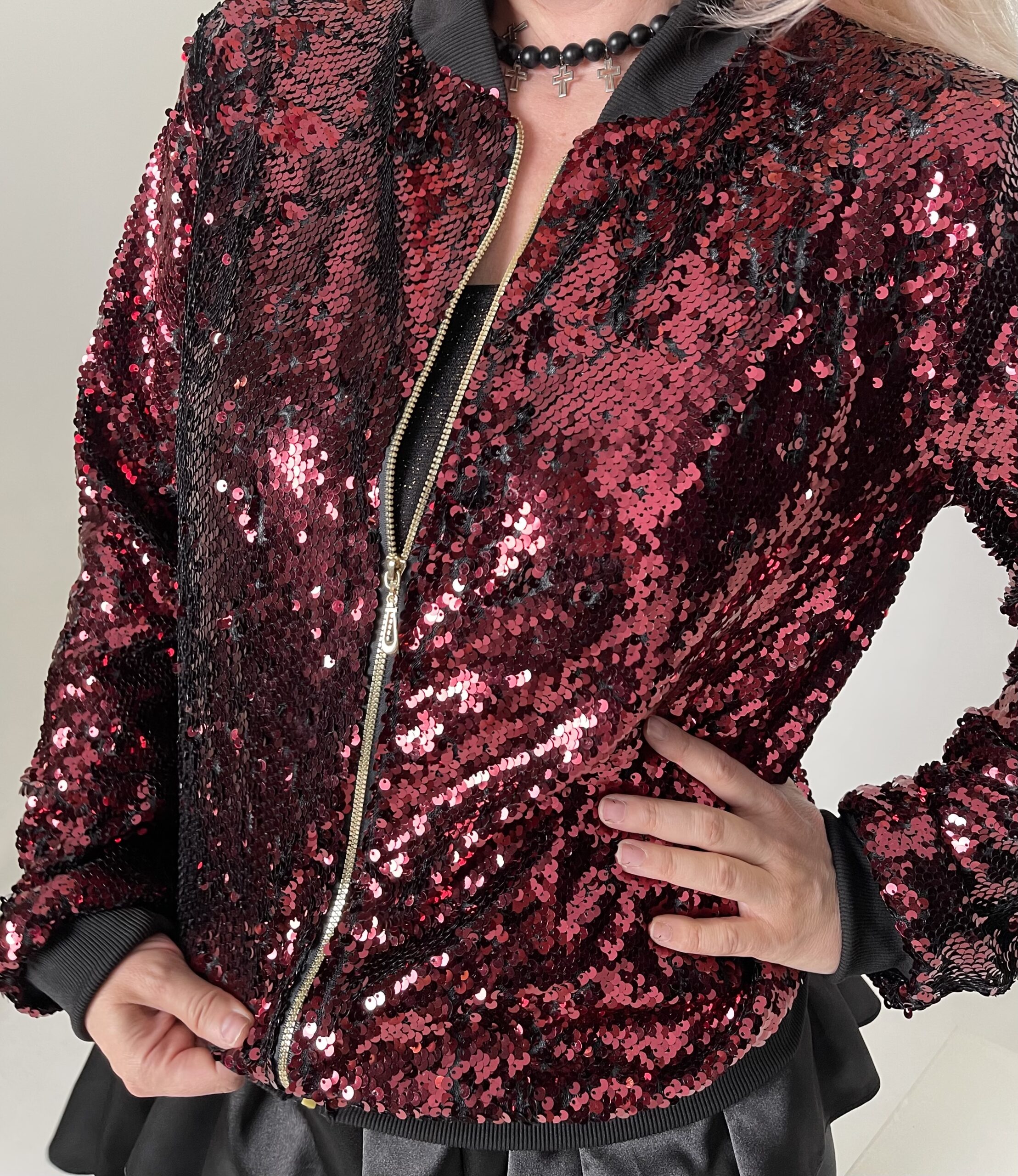 Этот красный бомбер, украшенный ослепительными пайетками, станет настоящей жемчужиной вашего гардероба. Яркий и эффектный, он привлекает внимание своим блеском и стильным дизайном. Внутренняя подкладка обеспечивает комфорт, а манжеты и пояс на резинке создают идеальную посадку. Отлично сочетается как с вечерними нарядами, так и с повседневными образами, добавляя им изюминку. Будь то вечеринка, концерт или прогулка по городу, этот бомбер гарантирует, что вы всегда будете в центре внимания