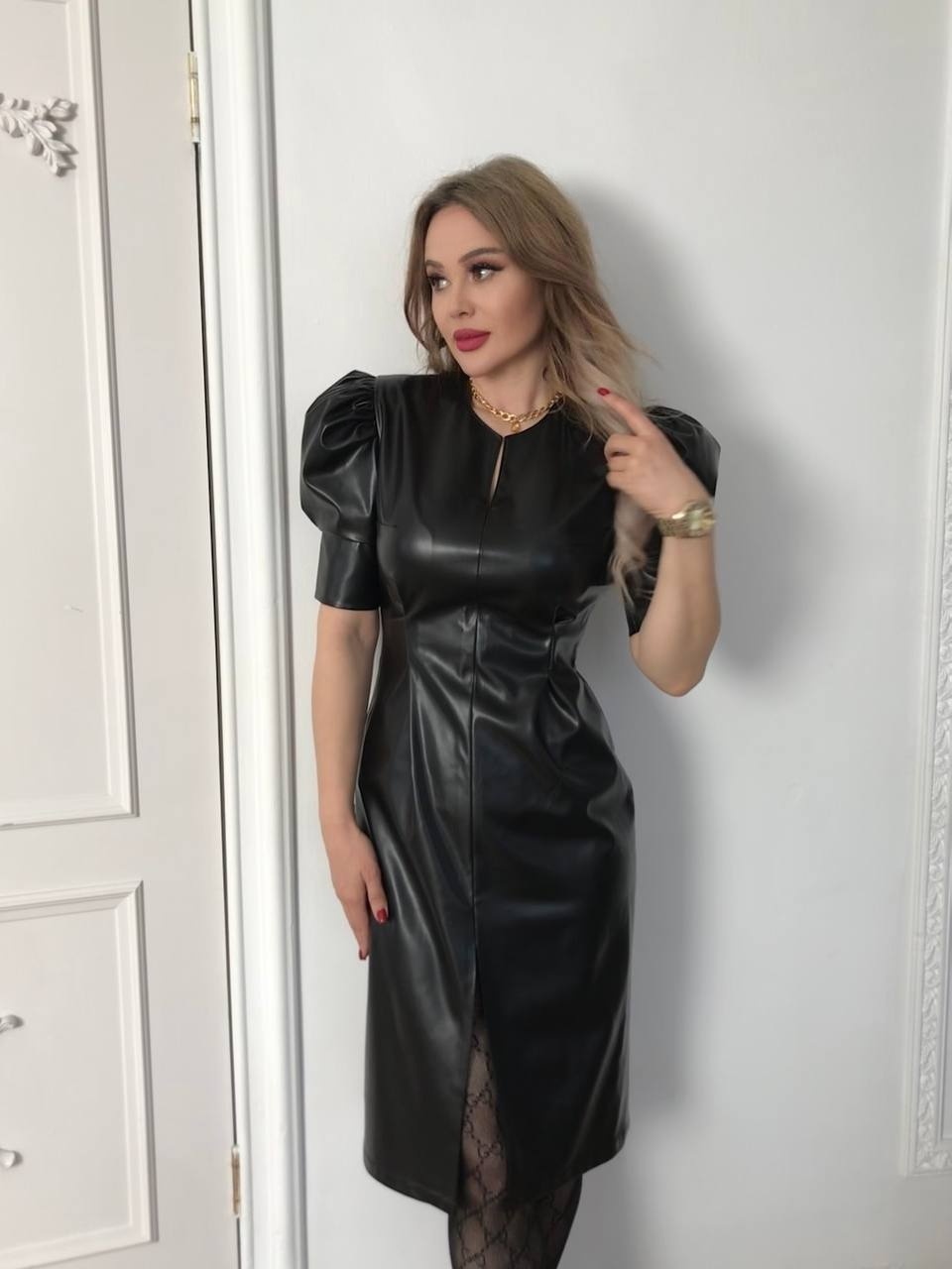 Платье французской длины из эко-кожи станет жемчужиной вашего гардероба. Оно объединяет в себе изысканность, современность и непревзойденный стиль, создавая образ, от которого невозможно отвести взгляд. Особое внимание привлекают рукава-фонарики, которые добавляют платью объем и романтичность. Эти оригинальные рукава создают эффектный и запоминающийся силуэт, делая ваш образ по-настоящему уникальным.