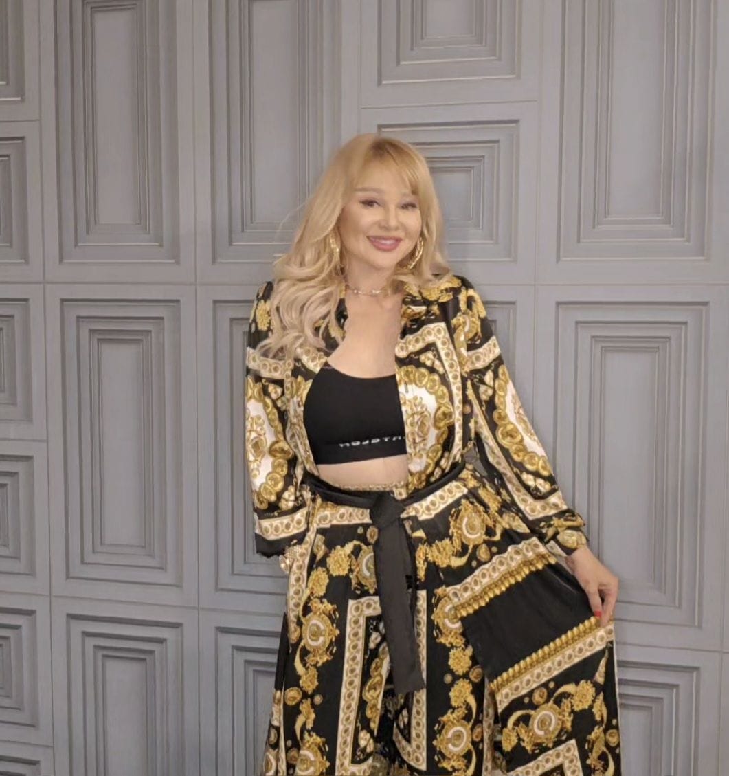 Удлиненная рубашка в виде туники придает ансамблю неповторимый шарм и изысканность. Этот элемент обеспечивает непринужденный, но элегантный вид, делая костюм подходящим для различных случаев — от деловых встреч до вечеринок.